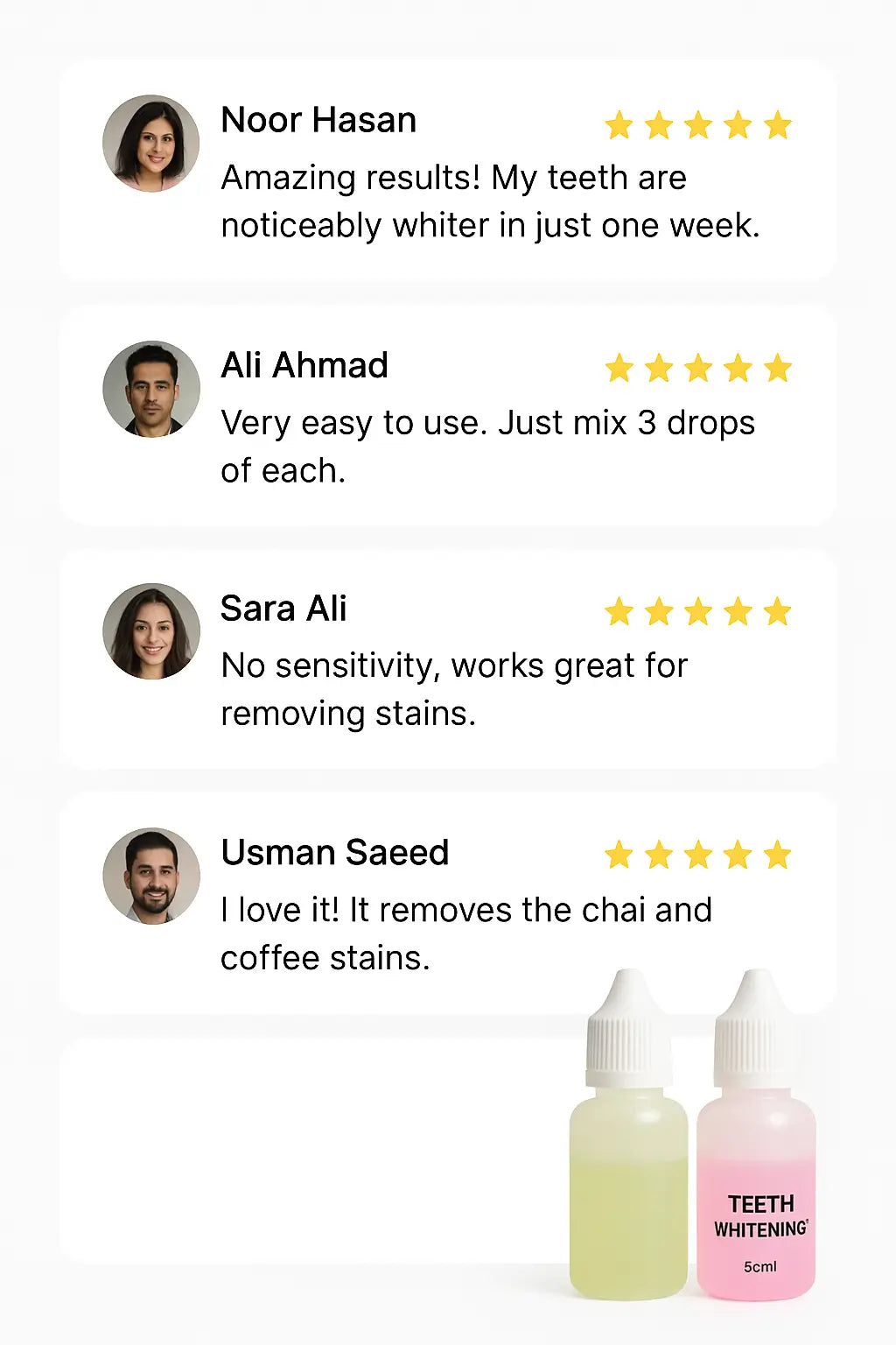 Yellow teeth? Chai, coffee aur smoking ki wajah se stains? Smile Bright aapke dant sirf 3–7 days me crystal white bana deta hai — bina sensitivity aur bina expensive dentist treatment ke.